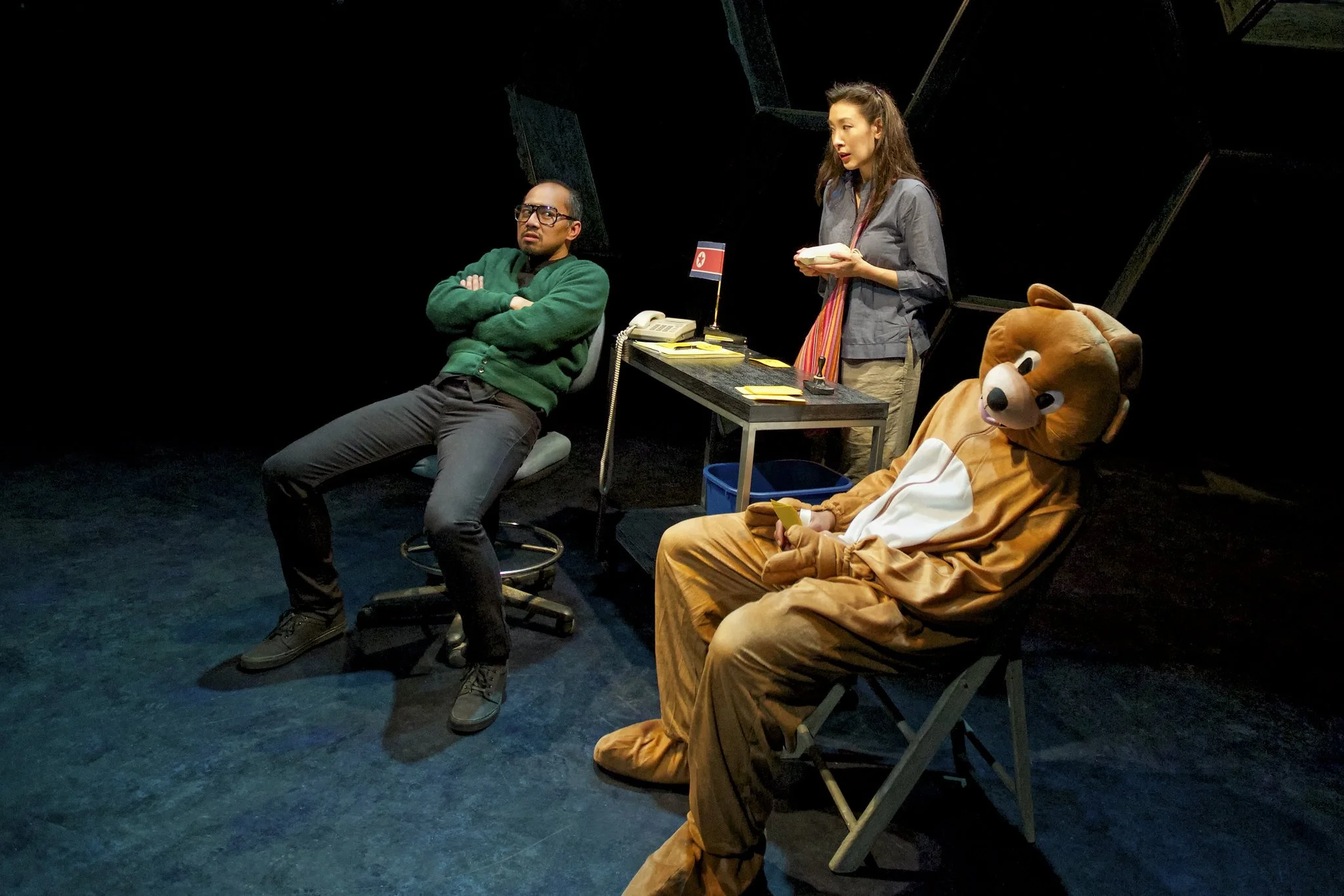 Minhee's emotional journey is populated by oddballs, brokering bureaucrats, fellow wanderers and mysterious old women in the woods, and they're all played by the wonderful Jomar Tagatac. Sinister and funny, Tagatac's creations are among the play's best, and the tone of dark whimsy gets deadly serious during one of his character's litany of horrors suffered at the hands of the North Korean government.