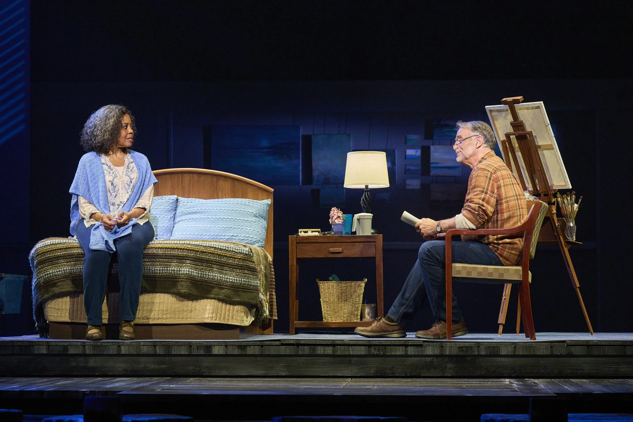 By story’s end, when the tears should be flowing, I was unmoved, though the person next to me was wiping her eyes with little tissues from a branded The Notebook tissue box while scrolling on her phone. The vocal arrangement (by Michaelson and Carmel Dean) swells into a thing of beauty as the full cast sings about being out at sea, remembering people when they’re gone and carrying them home, and it’s all lovely and sad and stirring. But then all that fades just as quickly as it came, a misty blur of a show that feels like it was barely there at all.